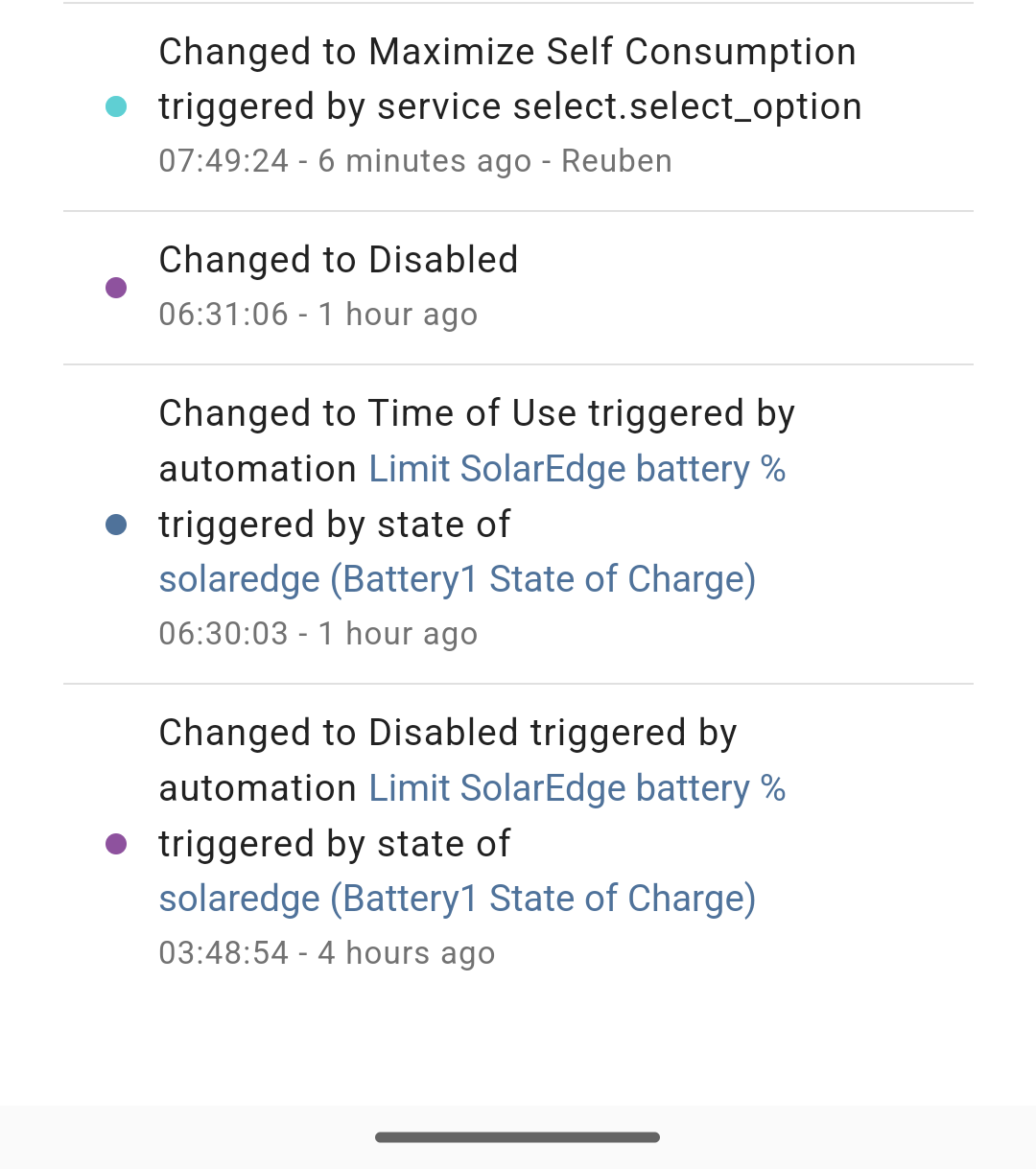 The above automations had worked well for several weeks without issue, then one morning I woke up to find my battery was disabled and I had been drawing electricity from the grid at peak rate, only a small amount but it was still annoying.