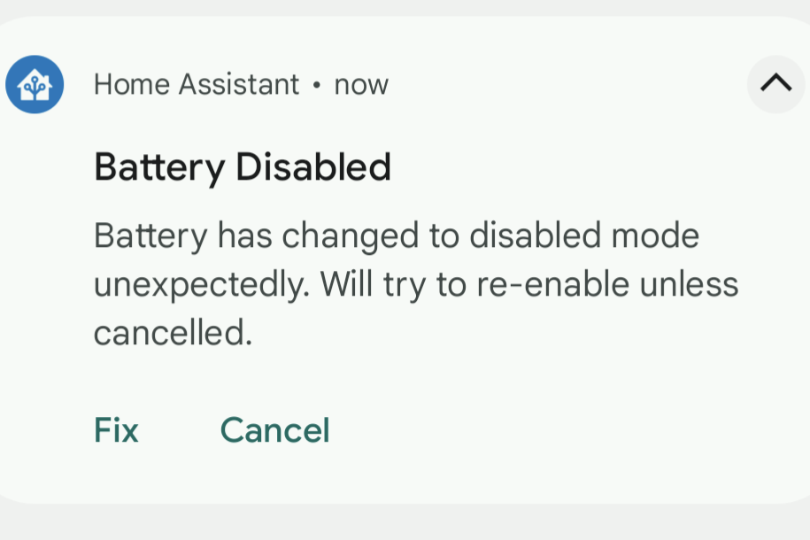 A final automation was created for the scenario where the battery mode changes to Disabled unintentionally